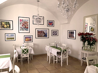 Podáváme denně čerstvé zákusky, dorty, rolády, minizákusky a domácí chlebíčky, toasty a italské panini. Přijímáme objednávky na dorty, zákusky i chlebíčky. Vše s láskou od naší cukrářky.